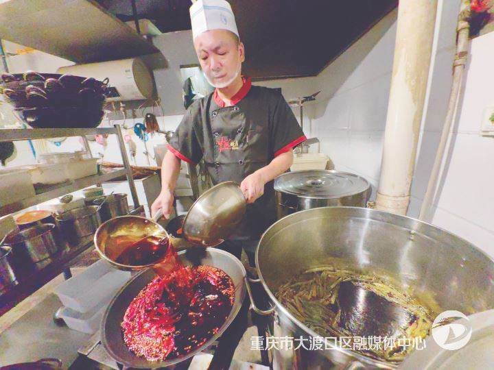 19867 次浏览 09-03全媒体记者 朱晨鹭 文/图9月2日清晨6点,位于九宫庙街道锦霞社区附近的周氏土灶老火锅店后厨已亮起暖黄的灯光。店内灶台上,辣椒、花椒、大葱等香料在热油中碰撞,40岁的炒料师傅梁文仁熟练地系上围裙,双手
