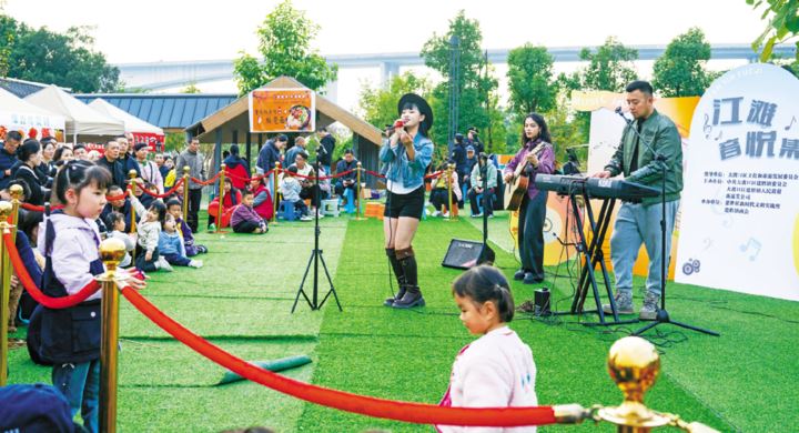 38374 次浏览 12-08“还记得你说家是唯一的城堡,随着稻香河流继续奔跑”“乌溜溜的黑眼珠和你的笑脸,怎么也难忘记你容颜的转变”……近日,钓鱼嘴公园江滩边,悠扬旋律与江潮声交织共鸣——建胜镇“半岛音悦集”音乐文化活动在此温情